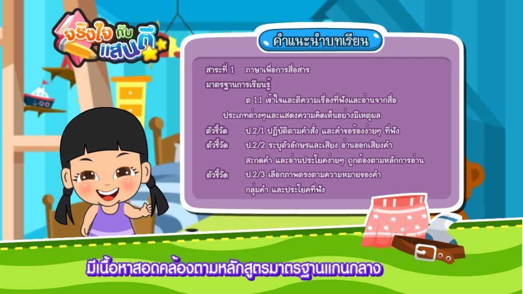 - มีเนื้อหาสอดคล้องตามหลักสูตรมาตรฐานแกนกลาง